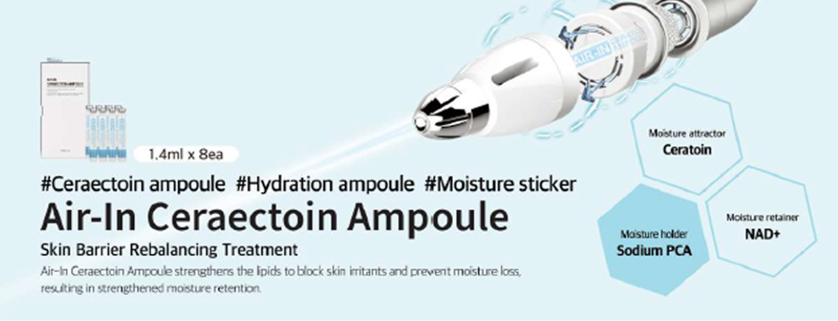 Ectoin is a natural ingredient that attracts water molecules around it and makes a moisture layer. Ceramide tightens the gap between dead skin cells and helps prevent moisture loss. Ceraectin, the combination of the two, helps stabilize the skin barrier and promotes hydration.