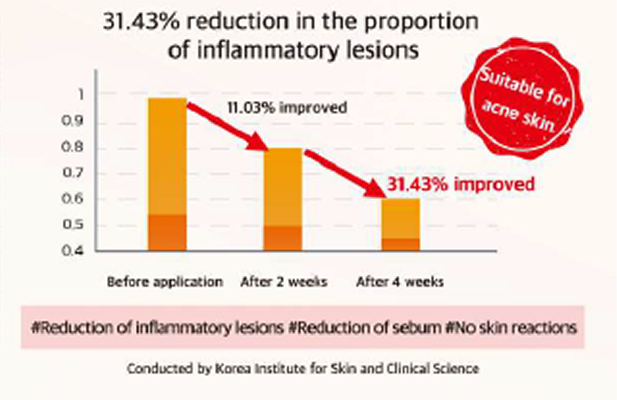 Improves red or swollen acne by removing bacteria causing acne. Helps the growth of new cells by discharging aged epidermal cells and sebum in the pores.